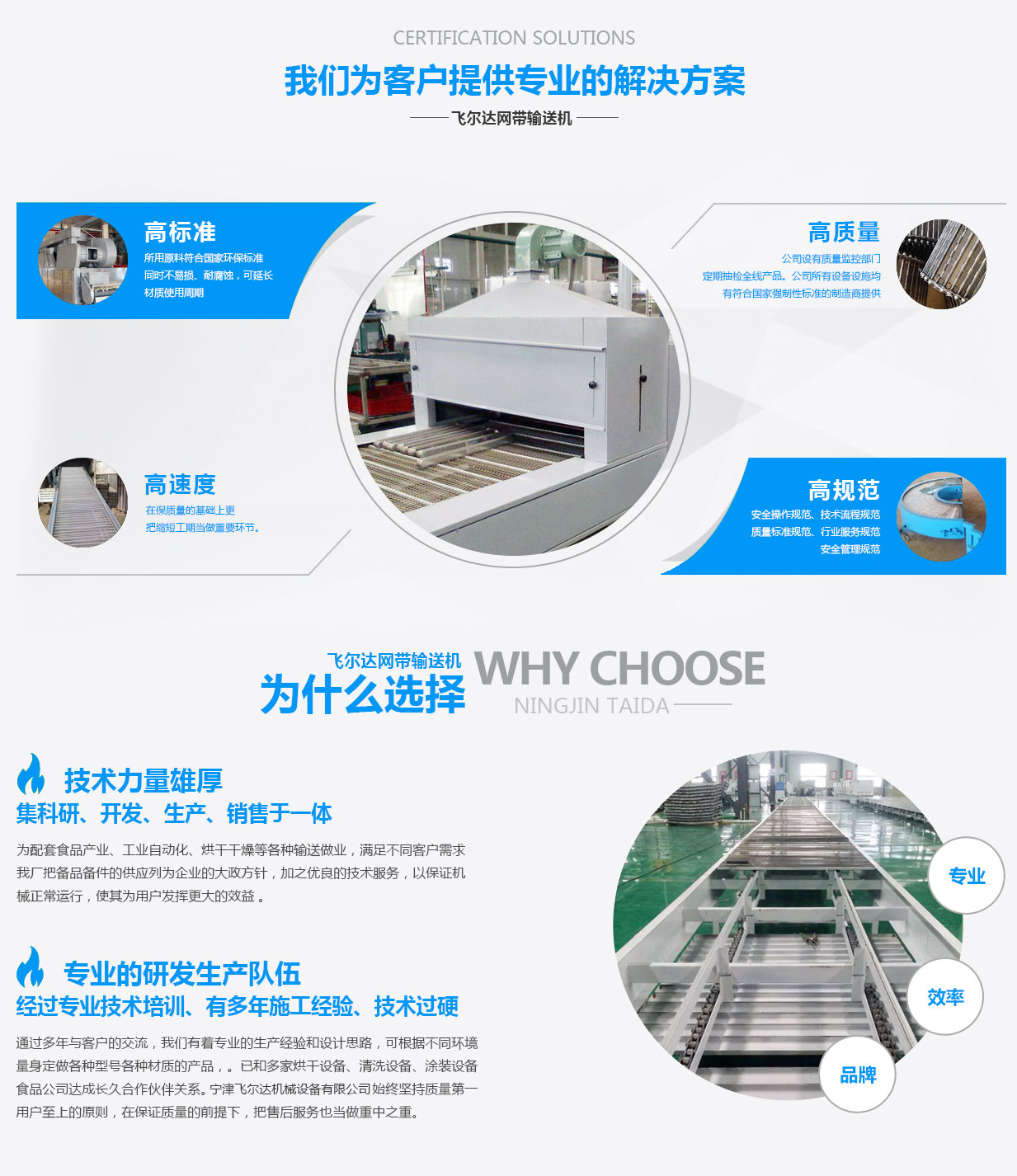 寧津飛爾達機械設備有限公司始建于1997年,位于山東省寧津縣經濟開發區。本公司以生產制造金屬類網帶、鏈板、鏈條為主導產品。 建廠近20年,已和多家烘干設備、清洗設備、涂裝設備、食品公司、工業自動化達成長久合作伙伴關系。在保質量、保工期的基礎上更把售后當做重要環節。 本廠配件系列有:輸送網帶、輸送鏈板、輸送鏈條、乙型網帶、烘干網帶、清洗網帶、不銹鋼鏈板、沖孔鏈板、排屑鏈板。 設備系列:網帶輸送機、鏈板輸送機、烘干輸送機、清洗輸送機、轉彎輸送機。